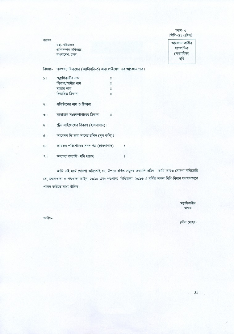 ৩। পশুখাদ্য ক্যাটাগরি-৩ লাইসেন্স আবেদন ফরম